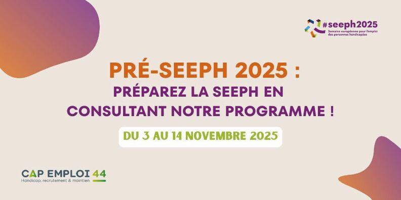 Du 3 au 14 novembre, CAP EMPLOI 44 vous propose une série d’ateliers, webinaires et rencontres pour vous préparer à la Semaine Européenne pour l’Emploi des Personnes Handicapées (SEEPH) 2025